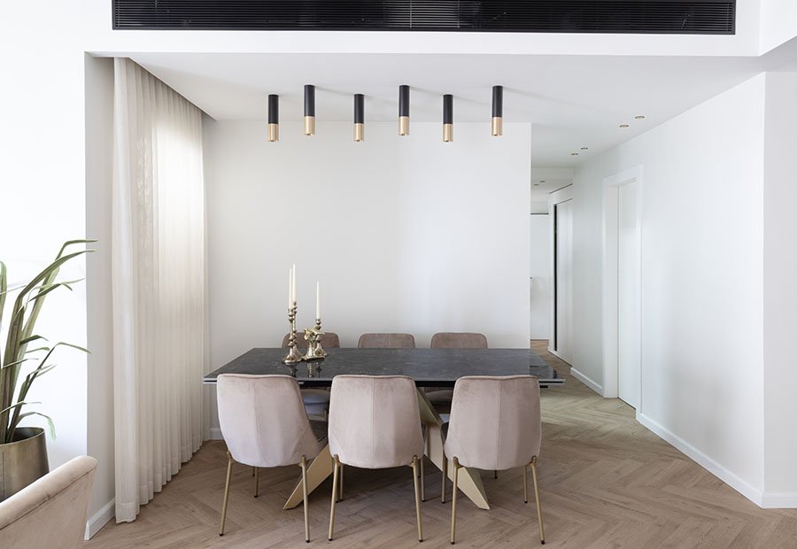 פרוגרמה: זוג + שלושה ילדים, שרכשו דירה יד שניה בעלת 6 חדרים שלא היתה לטעמם מבחינה עיצובית ולכן החליטו להחליף הכל את המטבח, הריצוף, חדרי הרחצה וכמובן כל החדרים קיבלו יחס מיוחד עם נגרות בעיצוב אישי.